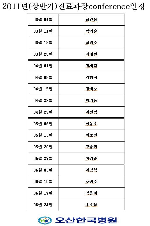 2011(상반기) 진료과장 Conference 일정 페이지 정보 작성자 관리자 작성일11-02-19 09:26 조회33,956회 댓글0건 관련링크 이전글 다음글 목록 본문 2011(상반기) 진료과장 Conference 일정 댓글목록 등록된 댓글이 없습니다. 이전글 다음글 목록