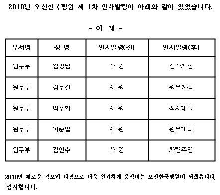 2010년 오산한국병원 제 1차 인사발령 페이지 정보 작성자 관리자 작성일10-02-06 15:42 조회34,047회 댓글0건 관련링크 이전글 다음글 목록 본문 .. 댓글목록 등록된 댓글이 없습니다. 이전글 다음글 목록