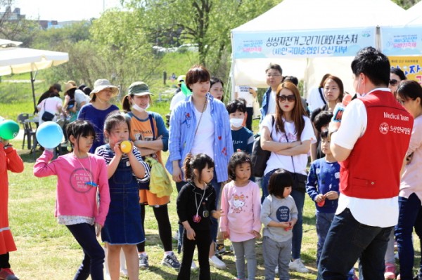 본원 의료진은 시민들의 건강을 책임 졌다면 홍보팀에서는 행사에 참여한 어린이들에게 형형색색의 풍선을 나누어주고 레크레이션