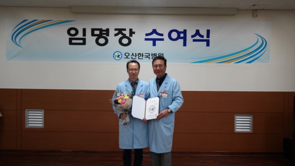 지난 5월 11일(목) 대회의실에서 공보성 홍보팀장의 사회로 박의순 내과부장 임명장 수여식이 진행되었다.