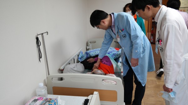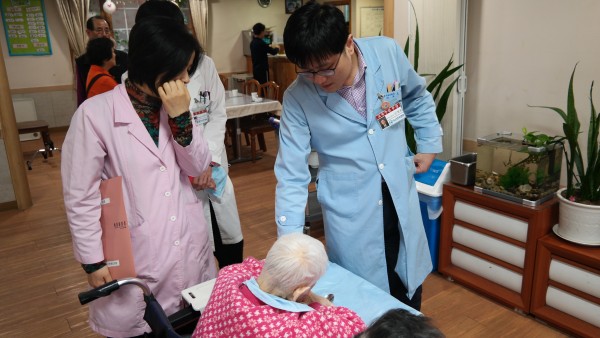 간호사와 사회복지사가 봉사활동에 동참하였습니다. 요양기관에 거주하고 계시는 거동이 불편하신 노인분들을 뵙고 한분씩 개인별로 상담을 하고 진료하는 형식으로 진행하였습니다.