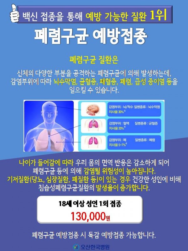 독감 예방 접종시 만 18세 이상의 모든 성인은 폐렴구균 예방접종,
