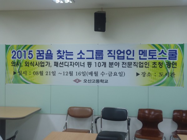오산시 혁신교육지원센터에서 주최한 2015년 꿈찾기 멘토스쿨 (지역사회 내 직업인을 청소년들의 멘토로 연계해주는)에서 전문 직업인의 멘토링 요청이 있었습니다.