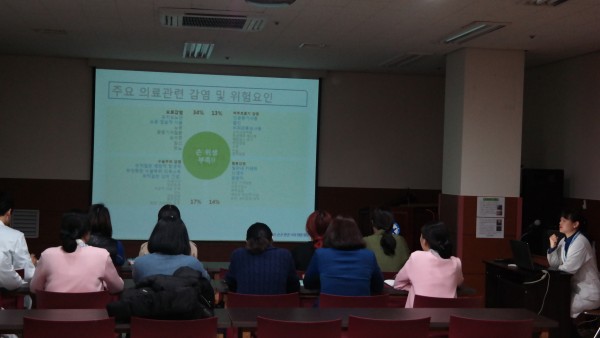 이번 교육에도 간호부장, 간호과장님 이하 수선생님 7분, 감염관리 선생님께서 교육에 힘써주셨습니다.
