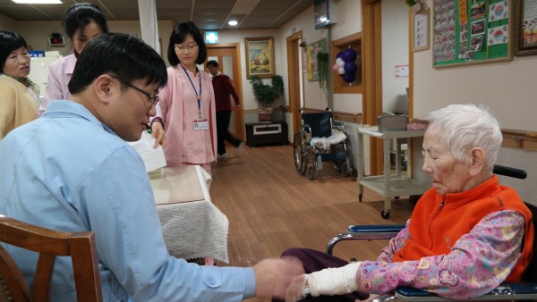 요양기관에 거주하고 계시는 거동이 불편하신 노인분들을 뵙고