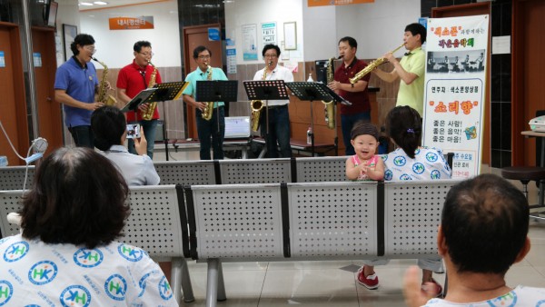 <소리향>의 '색소폰과 함께 하는 작은 음악회’가 신관 2층 로비에서 진행되었습니다.