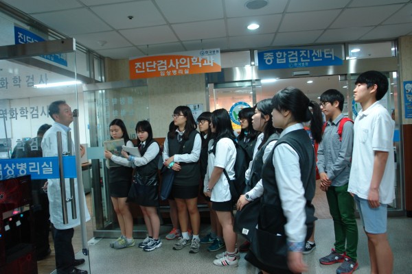 진단검사의학과를 시작으로 종합검진센터, 응급실, 영상의학과, 물리치료실, 외래진료실, 원무과 등의 순서로 방문하여 각각의 부서별 기능과 역할에 대한 설명 및 질문 사항에 대해 성실히 알려드리며, 의료계의 꿈나무들을 위한 알찬 교육의 시간을 가졌습니다.