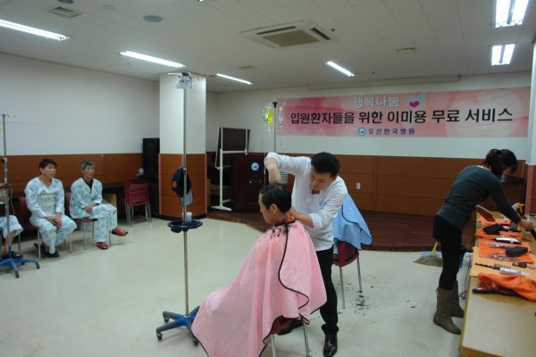 환자 및 보호자 30명을 대상으로 두 분의 미용사 선생님께서 봉사해주셨습니다.