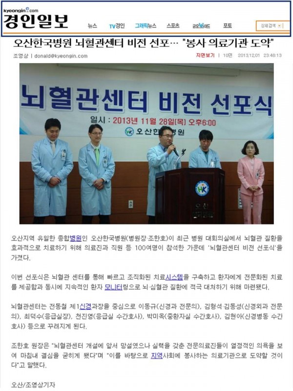 [언론속의 오산한국]2013.11.28 뇌혈관센터 비전 선포식 페이지 정보 작성자 오산한국병원 작성일13-12-04 09:04 조회57,730회 댓글0건 관련링크 이전글 다음글 목록 본문 오산한국병원 뇌혈관센터 비전선포식 댓글목록 등록된 댓글이 없습니다. 이전글 다음글 목록
