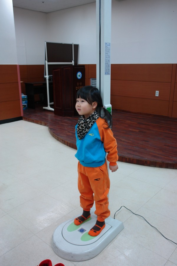 대회의실에서는 신장,체중계에 직접올라가 신장과 체중을 재보고,