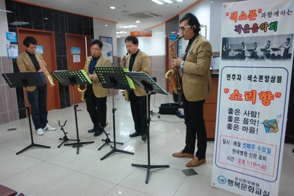 <소리향>의 '색소폰과 함께하는 작은 음악회’가 신관 2층 로비에서 진행되었습니다.