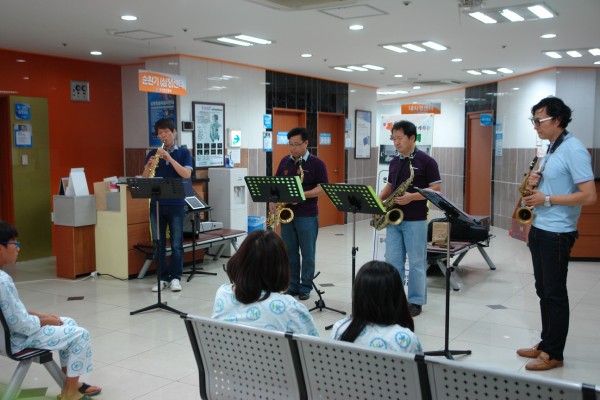 <소리향>의 '색소폰과 함께하는 작은 음악회’가 신관 2층 로비에서 진행되었습니다.