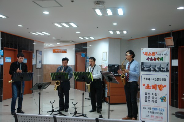 <소리향>의 '색소폰과 함께하는 작은 음악회’가 신관 2층 로비에서 진행되었습니다.
