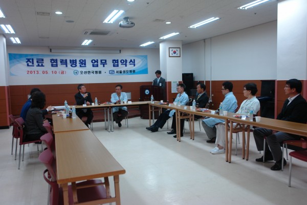 '오산한국병원'과 카톨릭대학교'서울성모병원'의 협력병원 체결식이 2013년 05월 10일 금요일 오산한국병원 대회의실에서 진행되었습니다.