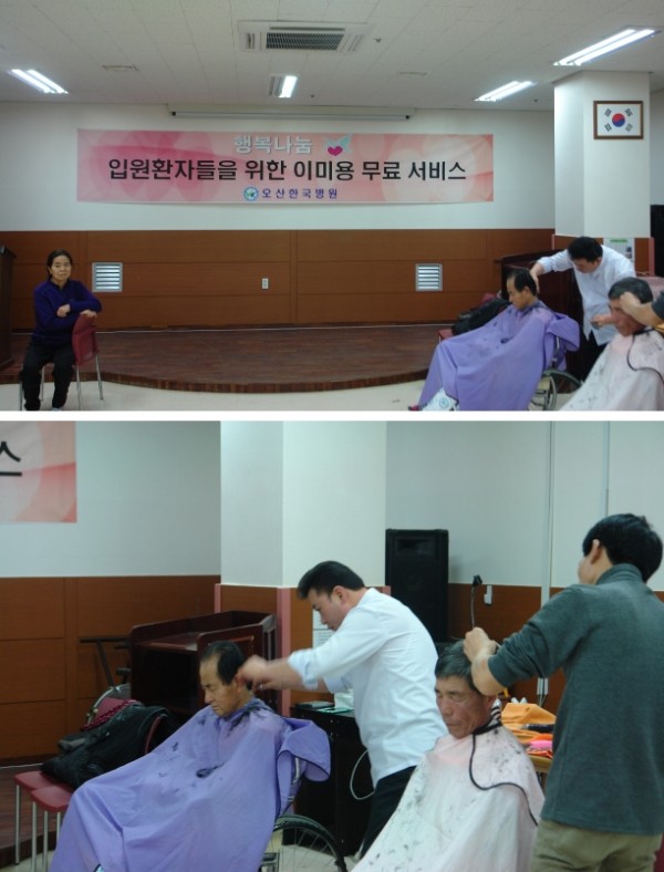 환자 및 보호자 50명을 대상으로 두분의 미용사 선생님께서 봉사해주셨습니다.