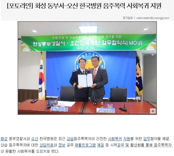 [언론속의 오산한국]음주폭력 사회복귀 지원(화성동부서-오산한국병원) 페이지 정보 작성자 관리자 작성일12-08-29 10:26 조회52,466회 댓글0건 관련링크 이전글 다음글 목록 본문 2012년 8월 29일 수요일, 경기일보 사람들 중. 댓글목록 등록된 댓글이 없습니다. 이전글 다음글 목록