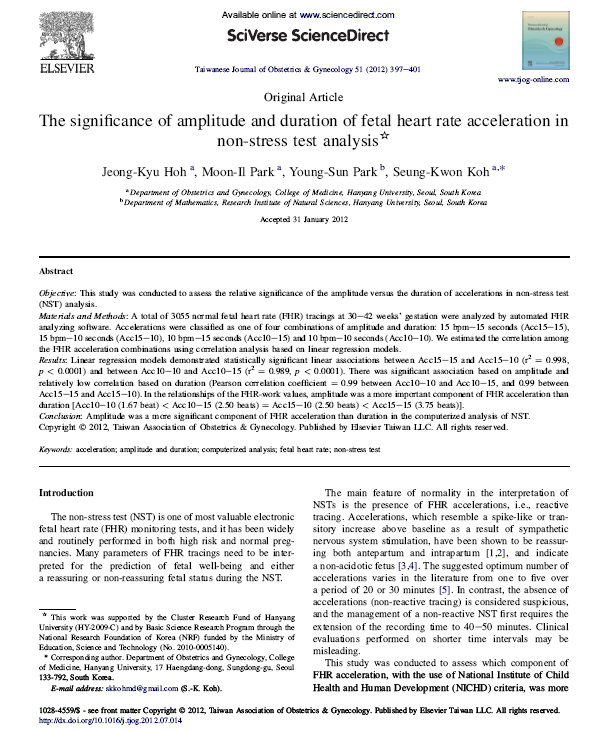 * 논문 제목: The significance of amplitude and duration of fetal heart rate acceleration in non-stress test analysis