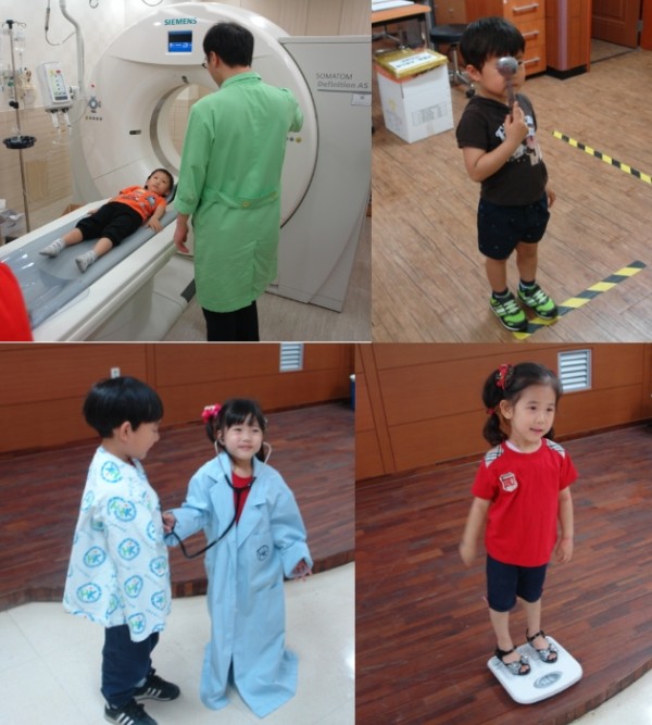 의사복과 환자복을 입고 의사와 환자체험을 해보았습니다.