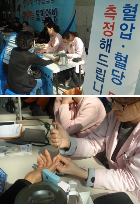 오산시민들에게 무료로 혈당과 혈압을 체크해 드리는 방식으로 구성되어 실시하였습니다.