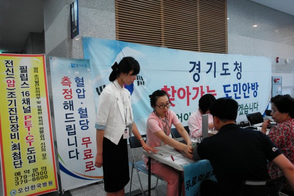 경기도청 주체로 시행되는 '찾아가는 도민 안방 '에 오산한국병원이 협력 무료건강검진을 하였습니다.