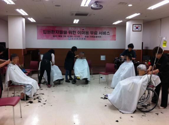 환자 및 보호자 60분을 대상으로 다섯분의 미용사 선생님께서 봉사해주셨습니다.