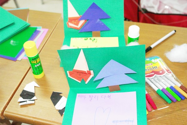 12월22일 수요일 오후 3시부터 5시까지 크리스마스를 맞이하여 " 엄마와 함께하는 크리스마스 카드 만들기" 행사를 진행하였습니다.