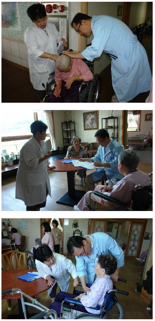 요양기관에 거주하고 계시는 거동이 불편하신 노인분들을 뵙고 한분씩 개인별로 상담을 하고 진료하는 형식으로