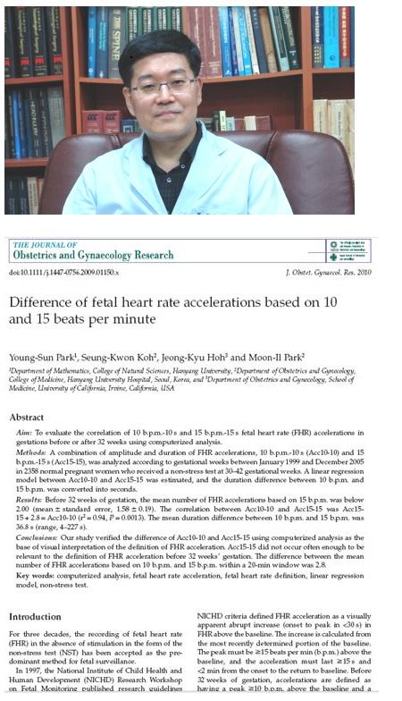 논문 제목은 Difference of fetal heart rate accelerations based on 10 and 15 beats per minute 입니다.