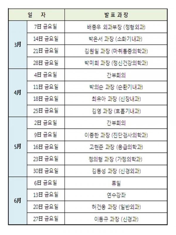 2014년 상반기 진료과장 CONFERENCE 일정 페이지 정보 작성자 관리자 작성일14-02-28 09:29 조회39,955회 댓글0건 관련링크 이전글 다음글 목록 본문 2014년 상반기 진료과장 CONFERENCE 일정 댓글목록 등록된 댓글이 없습니다. 이전글 다음글 목록
