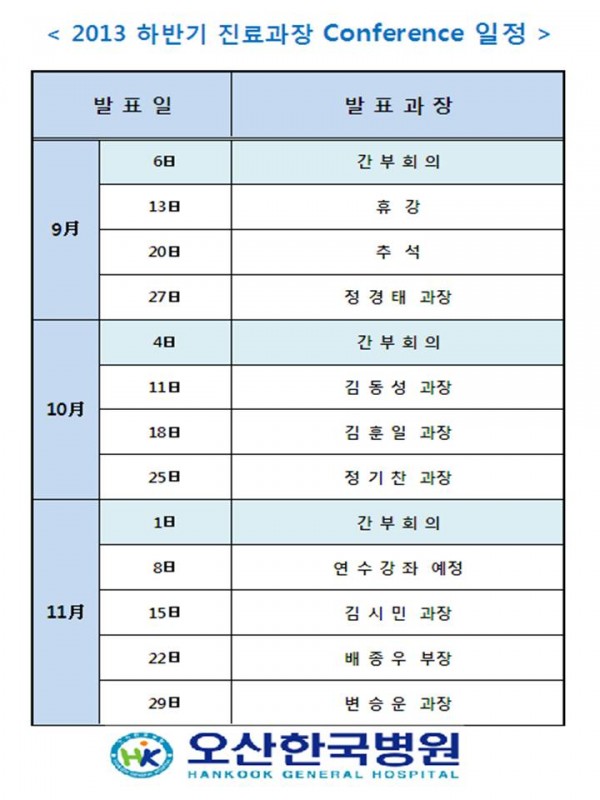 <2013년 하반기 진료과장 conference 일정> 페이지 정보 작성자 관리자 작성일13-09-04 12:11 조회38,740회 댓글0건 관련링크 이전글 다음글 목록 본문 2013 하반기 진료과장 conference 일정 댓글목록 등록된 댓글이 없습니다. 이전글 다음글 목록