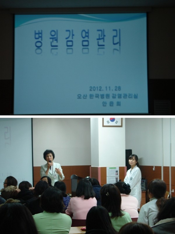 교육의 주제로는 병원내 감염관리이며, 감염관리실 안윤희 간호사님께서 강의해주셨습니다.