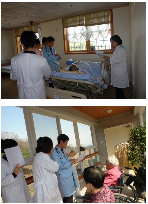 요양기관에 거주하고 계시는 거동이 불편하신 노인분들을 뵙고 한분씩 개인별로 상담을 하고 진료하는 형식으로
