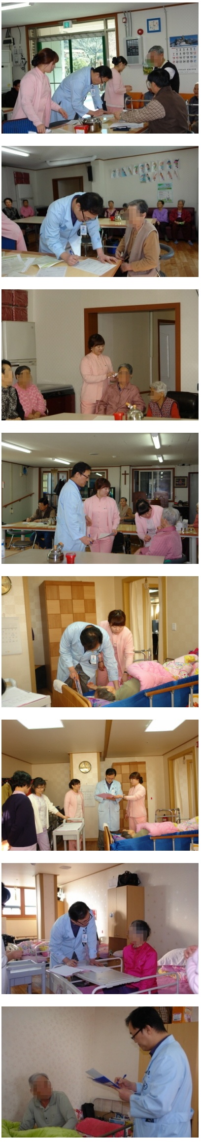 요양기관에 거주하고 계시는 거동이 불편하신 노인분들을 뵙고 한분씩 개인별로 상담을 하고 진료하는 형식으로 진행하였으며, 앞으로도 정기적인 의료봉사활동을 통해 지역주민의 건강을 내 가족같이 생각하고 보살펴드리는 오산한국병원이 되겠습니다. 감사합니다!
