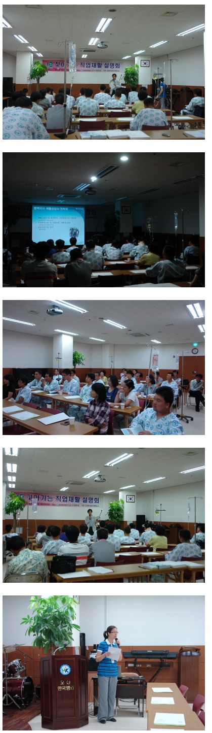 9월 17일 오후 3시에 신관 지하 1층 대회의실에서 근로복지공단 평택지사의 주관으로 본 병원에 입원치료중인 산재환자분들을 대상으로 직업재활설명회를 가졌습니다.