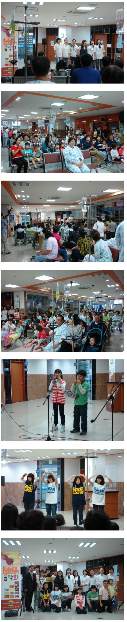원내 많은 분들의 관람과 협조로 마음의 여유와 즐거운 시간을 갖은 이번과 같은 공연은 앞으로 매월 넷째주 토요일에 정기적으로 열릴 예정이므로 환우여러분과 직원들의 많은 관심과 관람 부탁드립니다. 감사합니다!