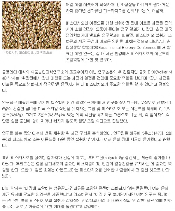 피스타치오, 장건강의 청신호 페이지 정보 작성자 관리자 작성일12-05-21 17:03 조회27,395회 댓글0건 관련링크 이전글 다음글 목록 본문 ** 기사 화면을 누르면 선명한 내용을 보실수 있습니다. <출차: 조선일보> 댓글목록 등록된 댓글이 없습니다. 이전글 다음글 목록
