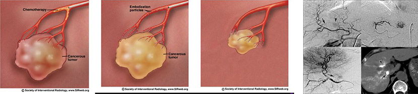 약을 투입하거나 혈관을 막아 암으로의 영양공급을 차단하여 암을 치료하는 방법으로서, 현재 간암의 치료에 가장 많이