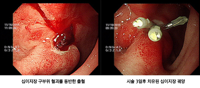 전기응고소작기나 레이저 또는 금속클립 등을 내시경을 통해 조작 하여 출혈부위를 응고 지혈시킬 수 있습니다. 이러한 지혈법으로 수술적 치료를 대신할 수 있습니다.