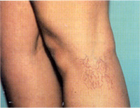 0.2 mm 이하의 아주 미세한 혈관으로 거미줄 모양같이 나타날 수 있으며 간혹 정맥류 치료 후에 나타나는 경우가 있습니다.