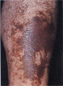 정맥벽이 약해져 손상이 오면 적혈구와 철분이 혈관 밖으로 빠져나가 피부에 축적되어 피부색깔이 적갈색으로 변하게 됩니다.