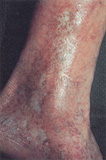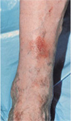 정맥혈의 저류의 마지막 단계로 피부가 괴사되어 움푹 파이게 되는 경우입니다.