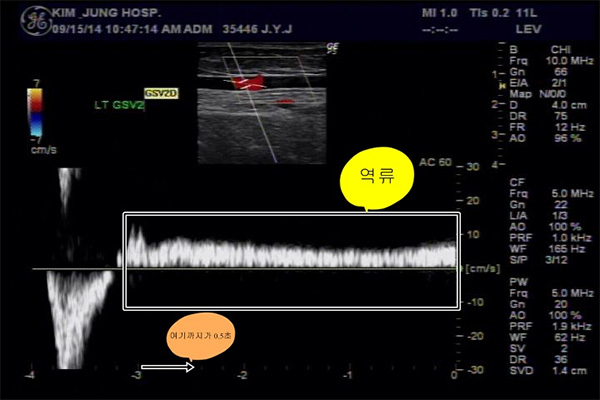 서혜부에서 시작되는 주요 표재정맥입니다. 주로 대퇴부 전면 및 내측과 종아리에 가장 발생 빈도가 높은 형태입니다.