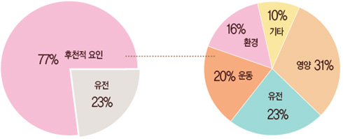 성장은 유전적 요인과 후천적 요인에 의해 결정이 되며, 유전적 요인은 단 23%에 해당됩니다. 부모에게 물려받은 키가 작다고 하여도 노력 여하에 따라 성인이 되었을때 최종 키는 클수도 있고 반대로 부모의 키가 크다 하여도 후천적으로 영양상태, 운동, 수면 상태등 생활 태도에 따라 최종 키가 부모에 비해 현저히 작을 수 도 있습니다.
